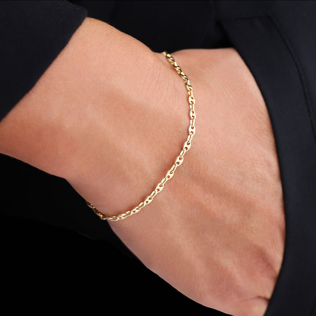 2.5mm Massiv Gold Kaffeebohnen Armband