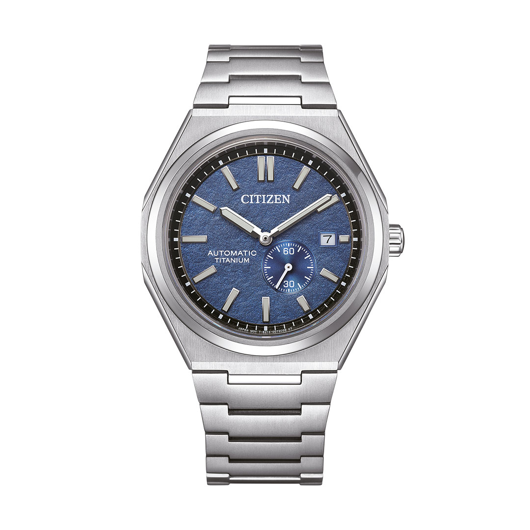Blaues Zifferblatt und Titanarmband