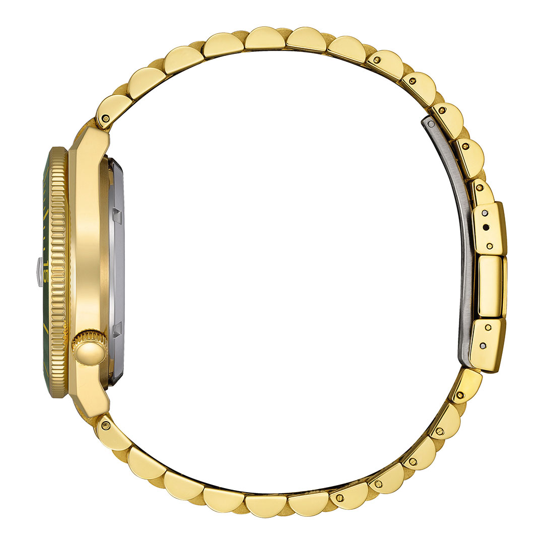 grünes Zifferblatt und goldarmband