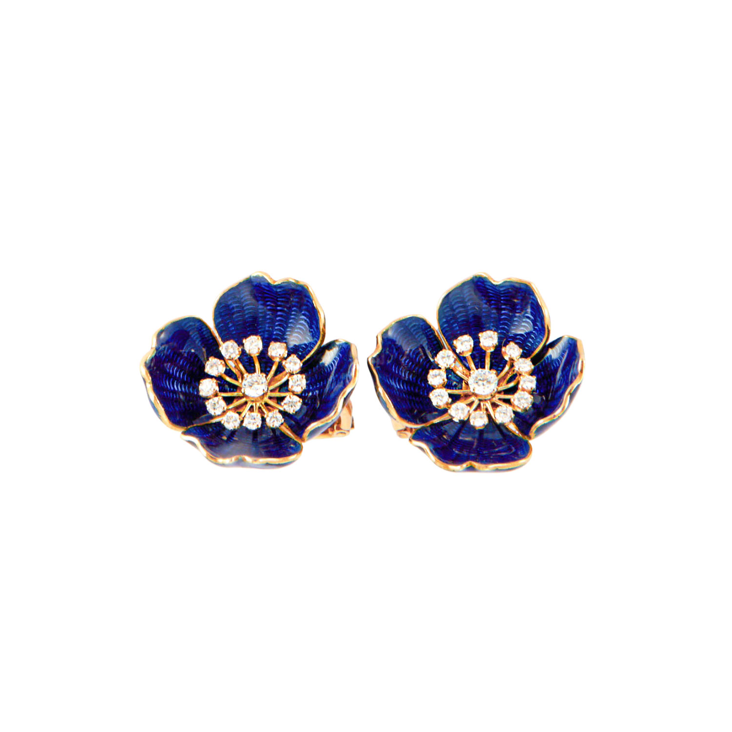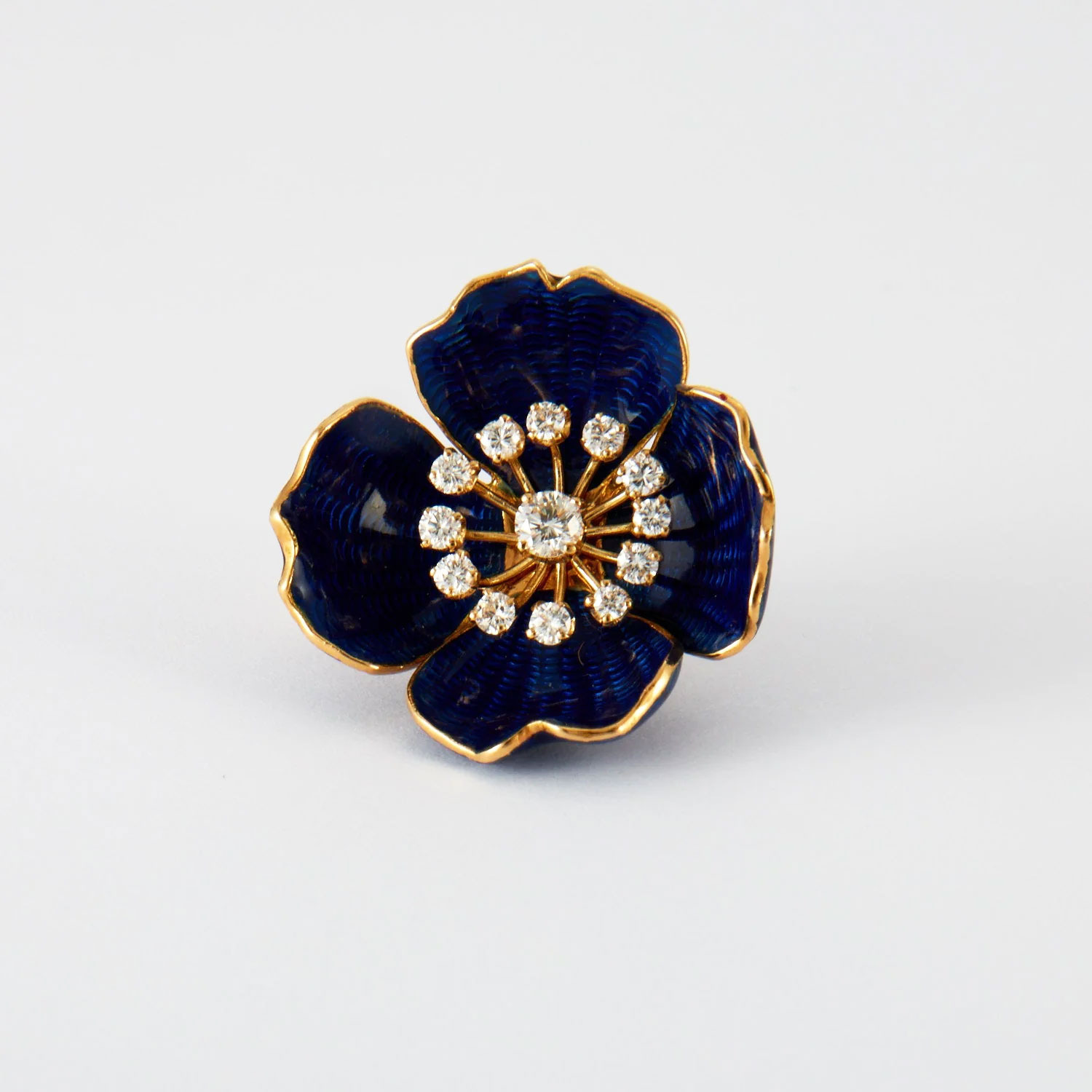 18 Karat Gold diamant & blau emailliert