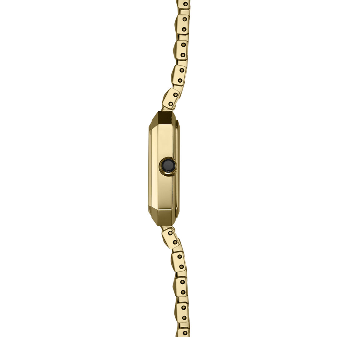 Goldenes Armband und weißes Perlmuttzifferblatt