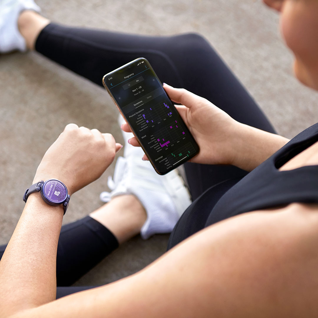 Verwende die Garmin Connect™-App, um deinen Menstruationszyklus oder deine Schwangerschaft aufzuzeichnen. Speichere Symptome, erhalte wertvolle Informationen und Tipps zu Training und Ernährung u. v. m. Details kannst du auch direkt bequem auf der Uhr einsehen.