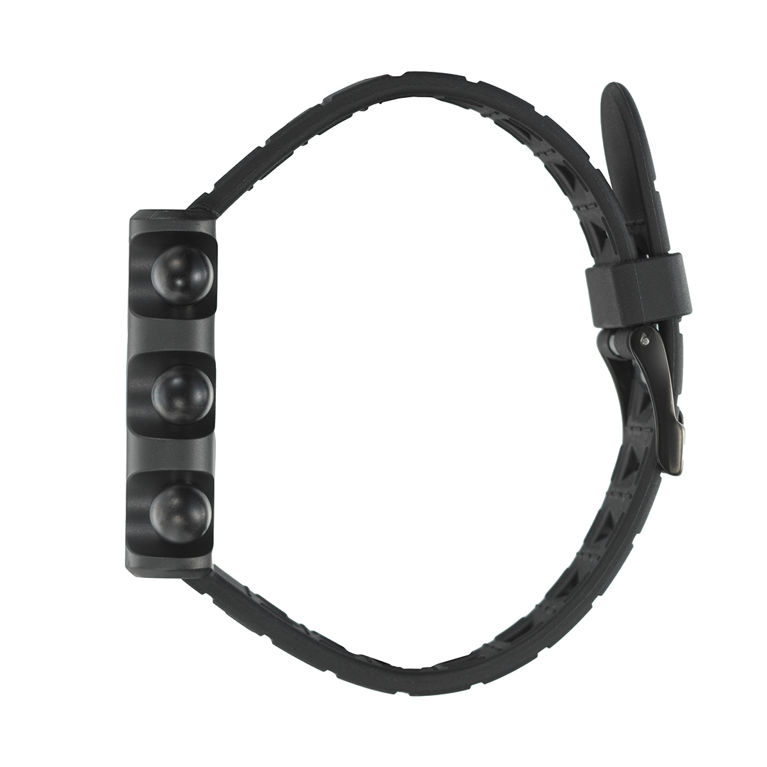 Zifferblatt und Armband aus schwarzem Kautschuk