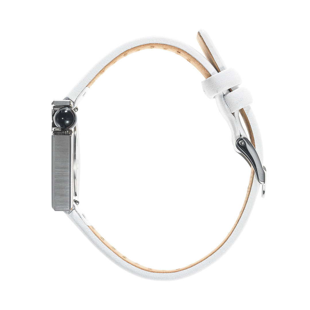 Silbernes Zifferblatt und weißes Armband